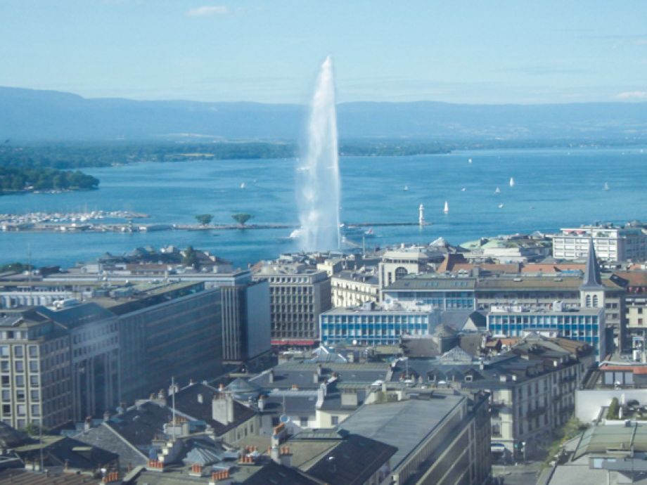 La Roue du Mont-Blanc offre une vue panoramique sur le lac et la ville. Un moment suspendu entre ciel, eau et montagnes.