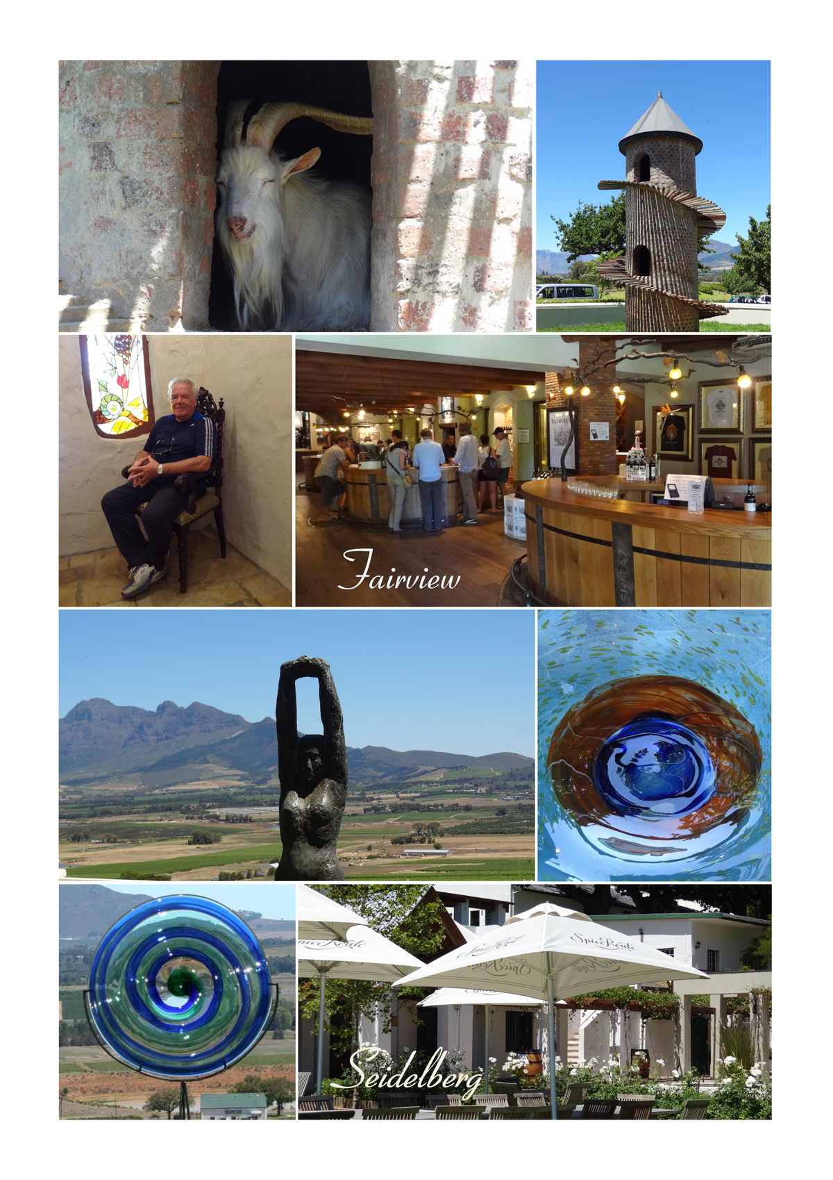 Hoch am Südwesthang des Paarl-Berges gelegen, bietet das Weingut Seidelberg mit seinen im kap-holländischen Stil erbauten Gebäuden grossartige, weite Aussichten über die Kap-Ebene bis hin zum Tafelberg. Das Restaurant, die Glasbläserei, die Shops, alles befindet sich im Umbruch. Sogar der Name hat sich geändert. Das Weingut heisst seit 2 Monaten Spice Route. Deshalb sind wir 2 x daran vorbeigefahren ohne es wiederzuerkennen. Das Anwesen wurde vom Nachbar Fairview aufgekauft. Im Weinkeller findet ein Spezial-Verkauf statt : sechs Flaschen Wein für € 9.